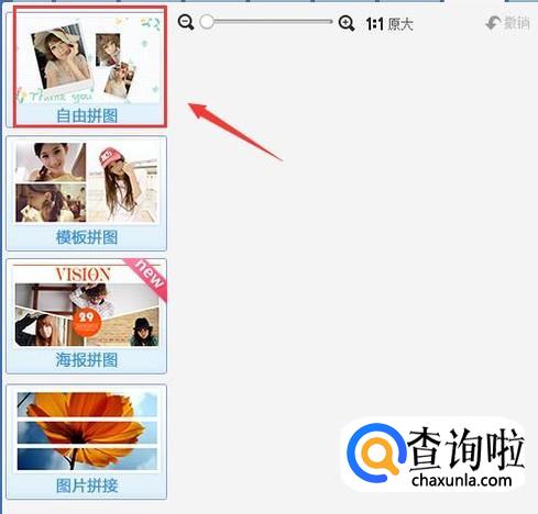 点击拼图选项在弹出的界面内找到自由拼图选项,如图所示:
