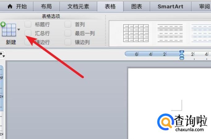 打开word,在表格菜单项下,点击左边的新建按钮。