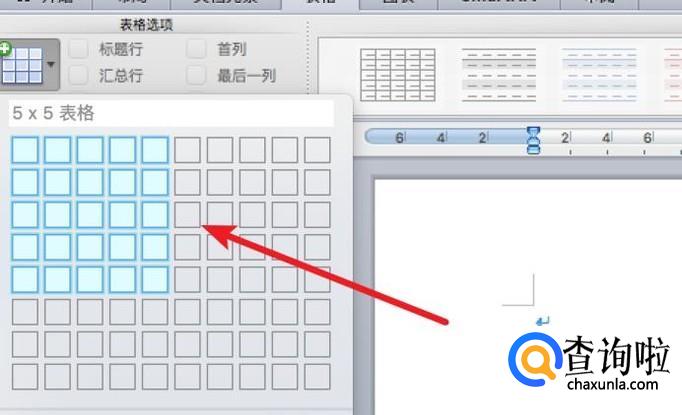 点击后,弹出窗口,在这里用鼠标选择好表格的行数和列数就行了。