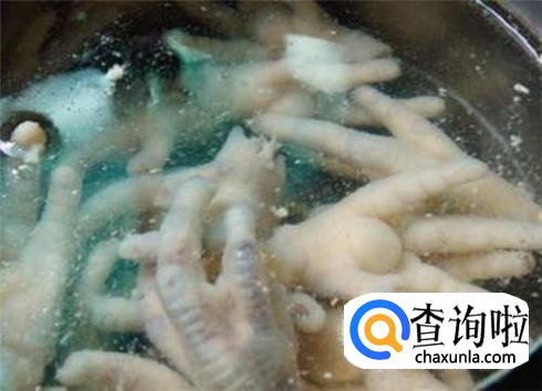 锅里加点盐,把鸡爪放进去煮,一般煮十五分钟左右吧,鸡爪就煮熟了,煮熟之后快速用漏勺捞出来浸泡在水里,多次换水直到鸡爪变凉,然后浸泡在冷水里俩小时。