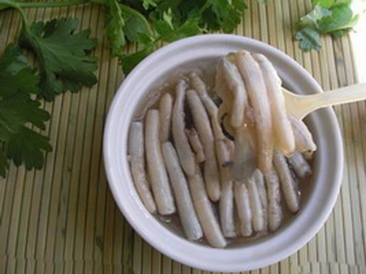 它的形状呈现一种圆筒状,又极其的类似于一根肠子。它的外观的长度一般在两寸左右。在中国的海南岛、福建、广东等等沿海地区通常用来制作成干制品、鲜品和加工品等等用于出售,并且并且用它做出来的食物口感是非常鲜嫩的。它不仅仅可以作为一种食用的材料。还可以用来制作药品,与枸杞等等中药能够炮制形成口服液等等药品。拥有补肾、滋阴等等功效。