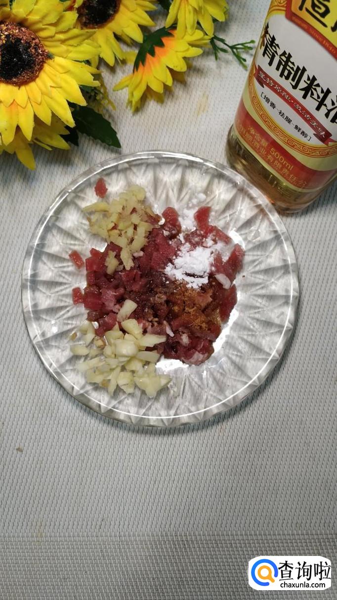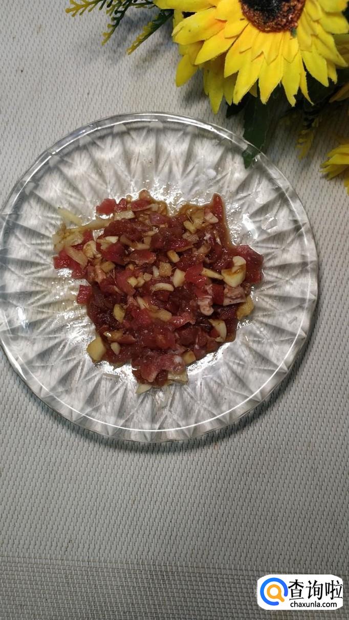 准备适量姜和蒜,将它们洗净后切碎,放入盘中,放入适量盐,鸡精,五香粉,生抽,料酒,淀粉,搅拌均匀,腌十分钟。