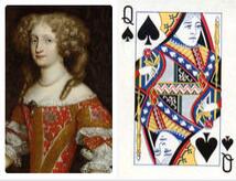 梅花Q :阿金尼(Argine),她的身世已经无从考证,她的名字是由拉丁文的女皇(Regina)一词字母重组而来。影射玫瑰战争结束的王后,亨利七世(来自于兰开斯特王朝)的王后伊丽莎白(约克王朝的公主)。英国兰开斯特王朝以红玫瑰为象征,约克王朝以白玫瑰为象征。两个王室经过玫瑰战争后,终于和解并把双方的蔷薇结合在一起。
