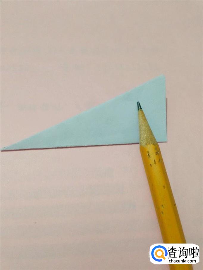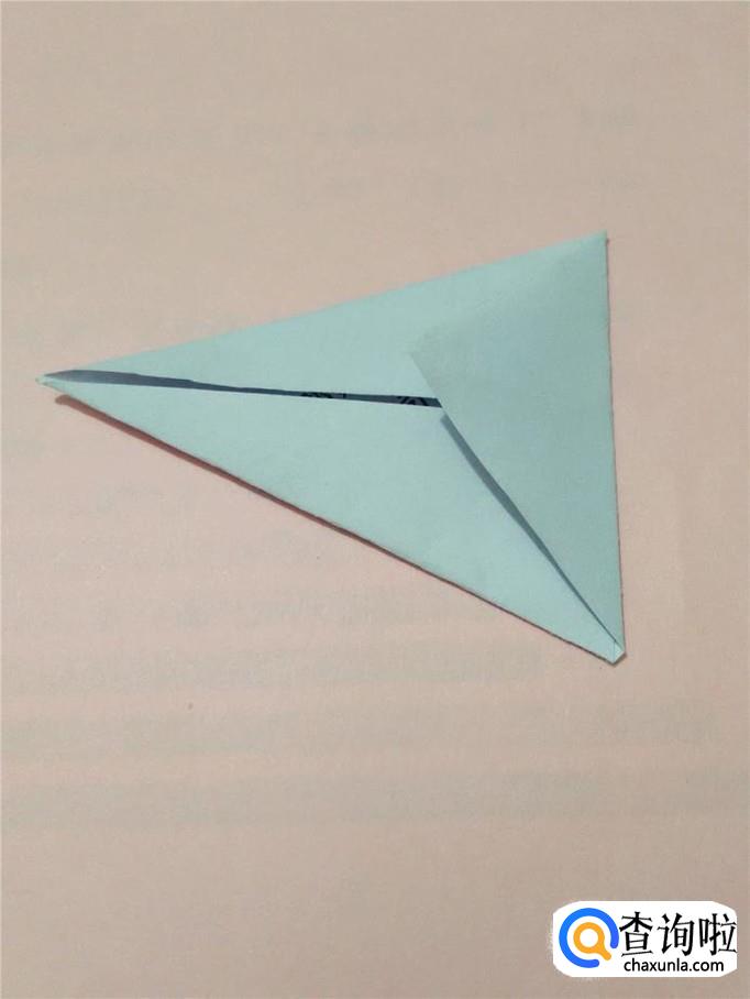 把左边的尖角往右上方折,尖部是小兔子的耳朵。