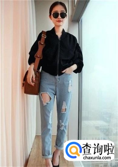 在天气稍凉的时候,牛仔裤还可以和夹克或卫衣搭配,夹克尽量选择短款的,这样搭配既不失温度,也不会感到臃肿,最好也搭配休闲鞋。