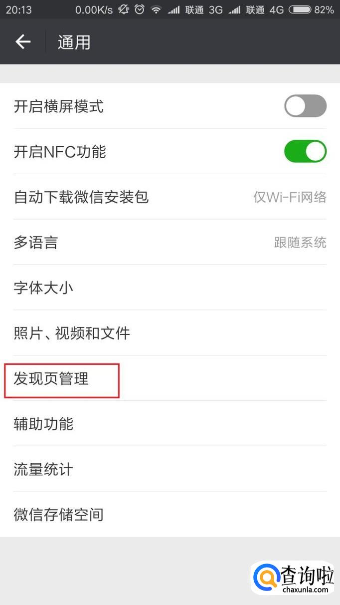 进入设置页面之后,点击“发现页管理”选项,进入设置页面。