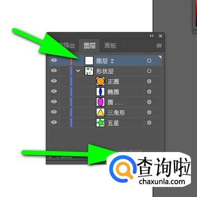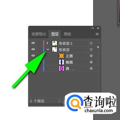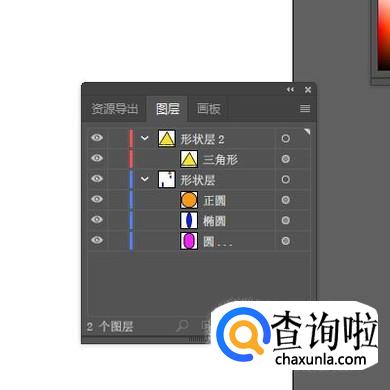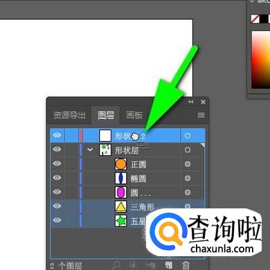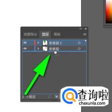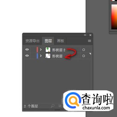 图层与图层之间,排列顺序不是固定的,我们可以移动图层来改变图层的排列顺序。比如,当前的排列是“形状层2”排在“形状层”的上面。我们想把两者调换下位置。