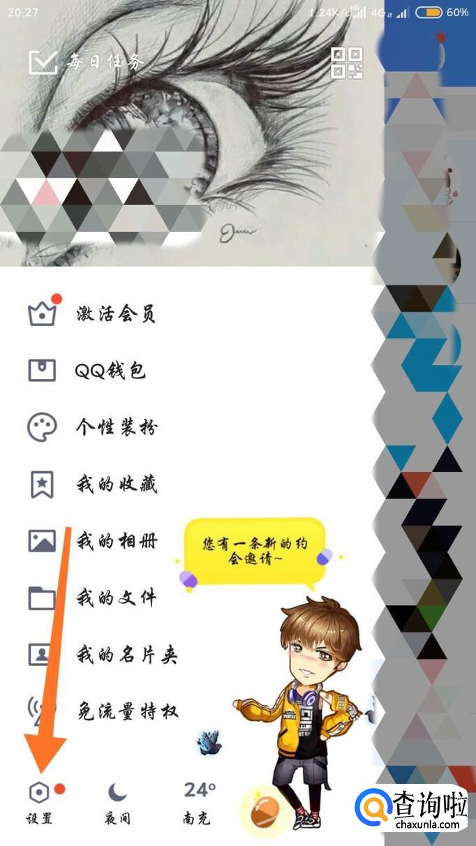 打开QQ就会看见这个东西,我们右划屏幕,点击左下角的“设置”。