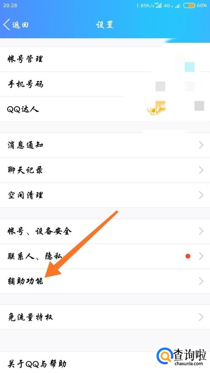 在设置里面有一个“辅助功能”按钮,找到之后点击一下。