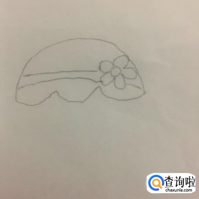 首先在A4纸上画出小女孩的帽子,如下图所示。画这部分的时候可以在右侧划出一朵小花。