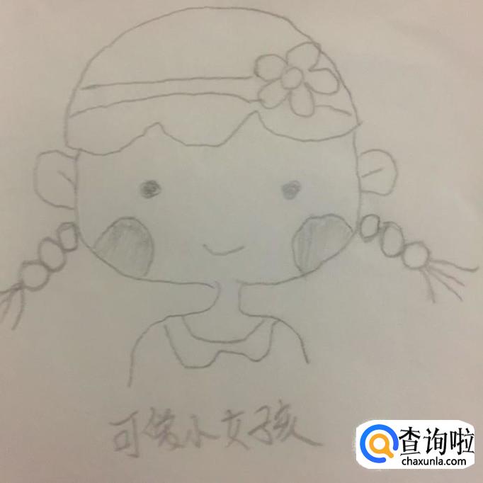 最后画出小女孩的脖子和肩膀,如下图所示。这样一幅小女可爱就画好了,希望大家能够喜欢。