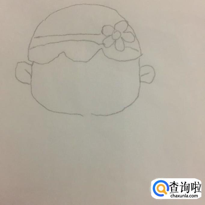 然后快出小女孩的脸蛋和耳朵,如下图所示。因为小女孩比较胖所以画的圆一点会比较好。