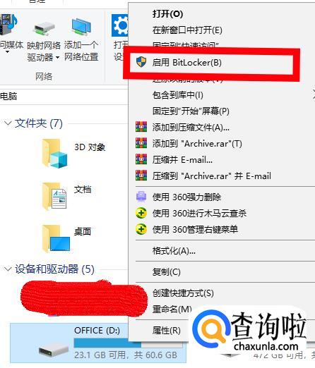 右键单击D盘,选中【Bitlocker】。