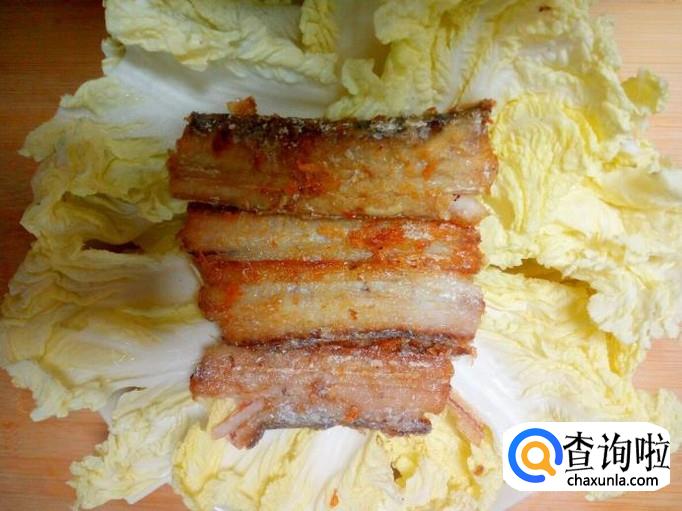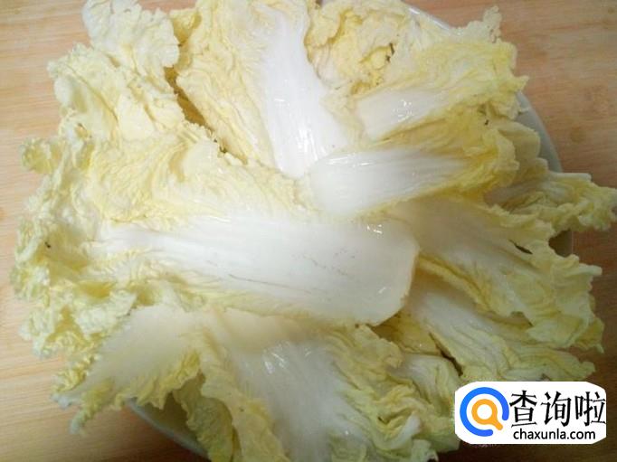 娃娃菜用手撕成片,用水清洗干净,控干水分,摆放在盘中。