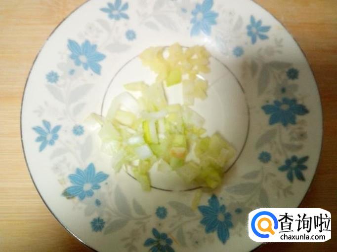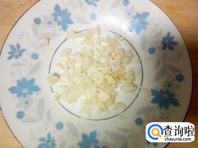 蒜去皮,用水清洗干净,切成末。切好葱,姜备用。