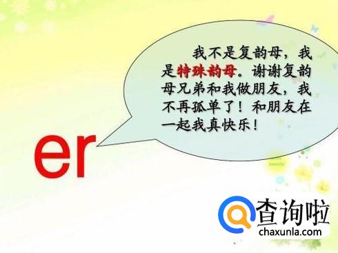 er是特殊韵母,只需要直接教孩子读就可以了。同样要进行四个声调的练习。