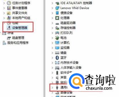 在“计算机管理”窗口里,选择“计算机管理”,点击页面左侧中的“设备管理器”选项,然后找到页面右侧的“通用串行总线控制器”选项。