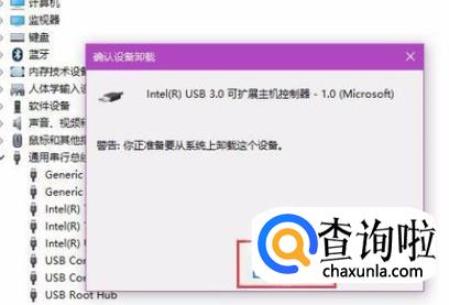 然后我们在弹出的对话框中点击确认按钮,确定删除该设备以及相应的驱动程序。