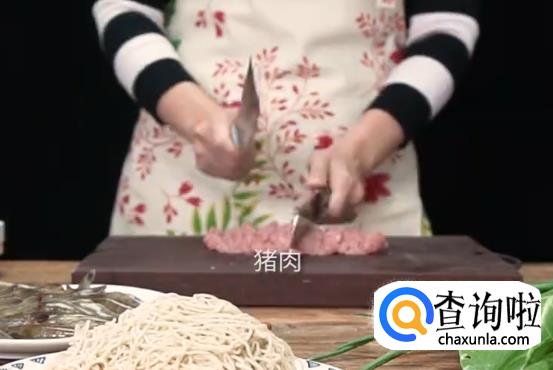 剁肉馅,切葱花。