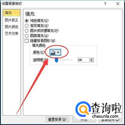 打开“设置背景格式”,将背景设置为黑色,如图所示。