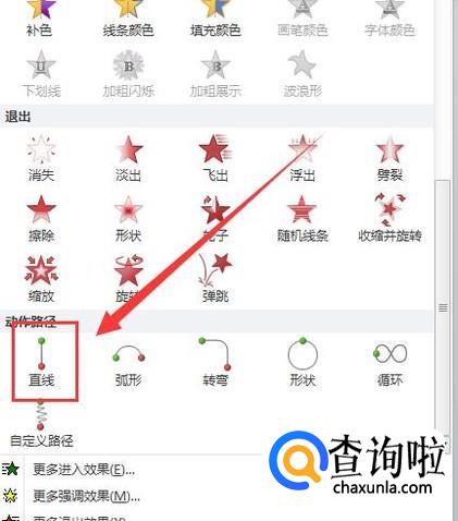 调整路径为左上方,采用同样方法选择最下面的文字添加直线动画,并设置路径为右下方,如图所示。
