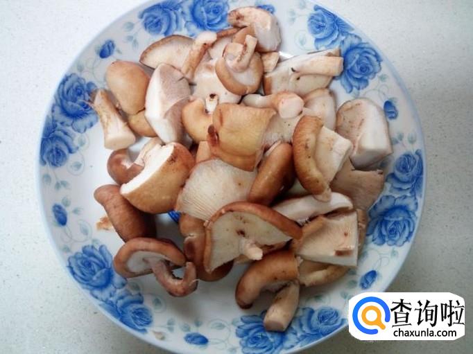 香菇去根,用水清洗干净,控干水分。大的香菇切成四块,小的香菇切成对半。