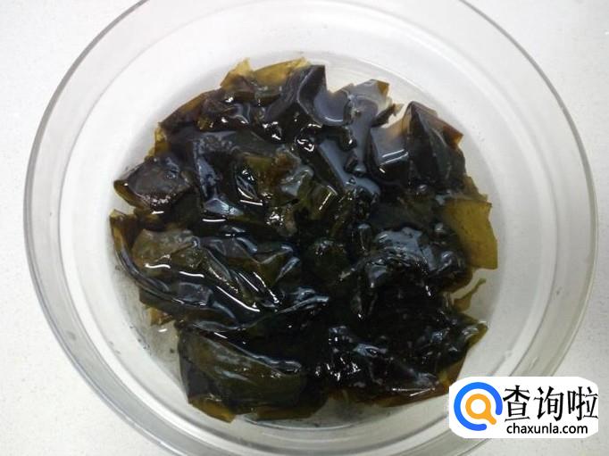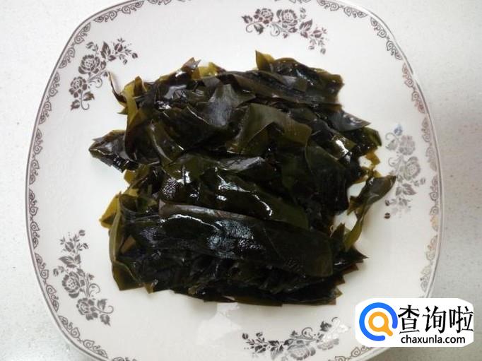 海带放入水中浸泡一下,然后用水清洗干净,控干水分,切成条。