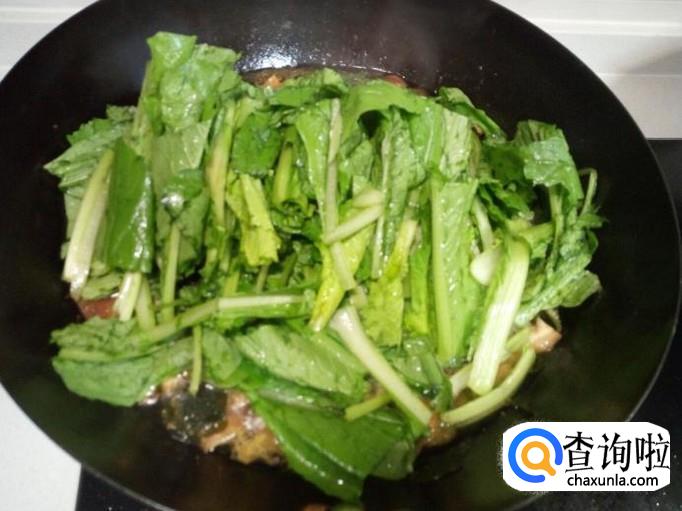 煮至十分钟左右的时间,放入小白菜,转大火烧开,稍翻动一下,放入味精,关火即可。