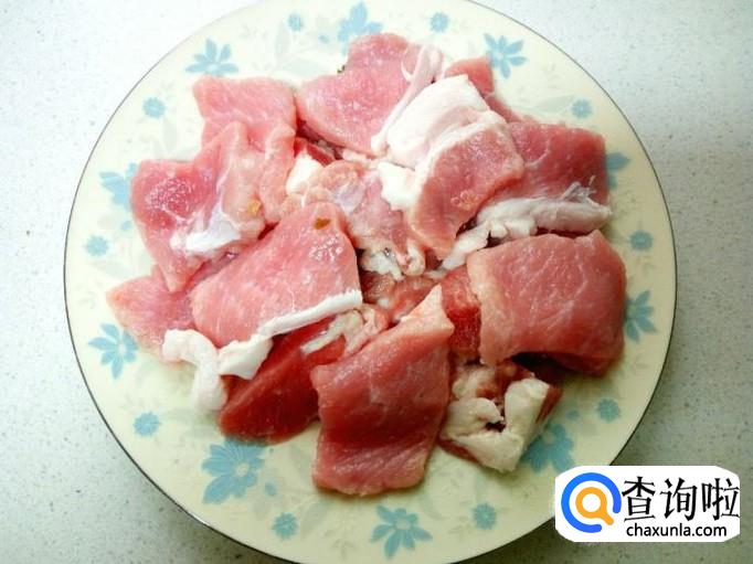 肉用水冲洗一下,控干水分,切成片(稍放些肥的肉,下些猪油,做出的汤比较好吃)。