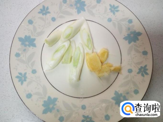 小白菜用水清洗干净,控干水分,切成段。切好葱,姜,备用。