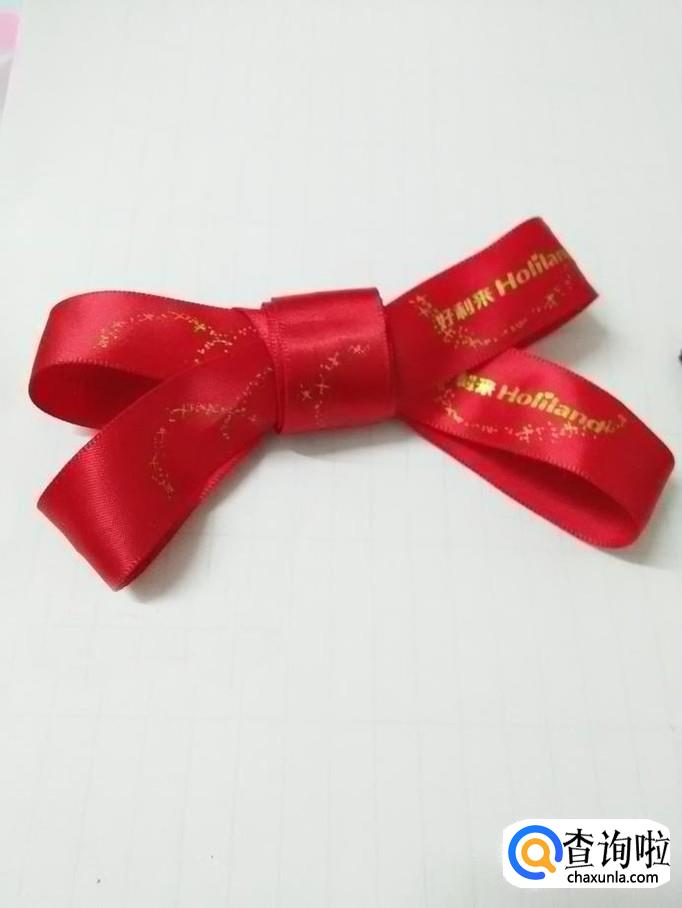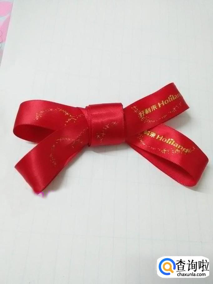 将蝴蝶结反过来,一个蝴蝶型花结就做完了。