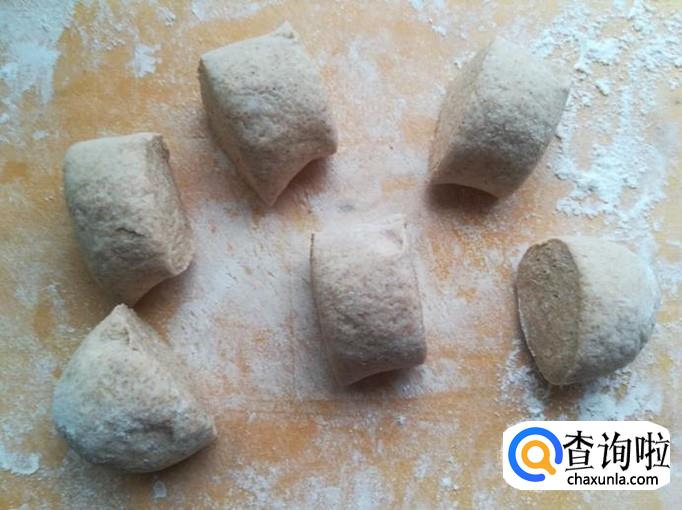 时间到了,面团发好了,把面团揪成六个剂子。