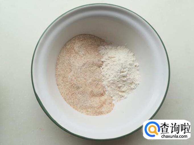 把面粉和麦糠放盆里备用。