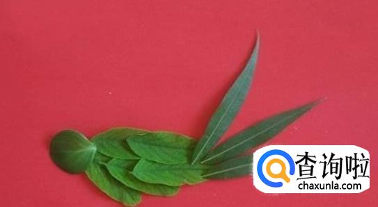 首先用几片椭圆树叶拼出小鸟的身体,叶子最好要匀称,差不多大小的,拼起来才好看。