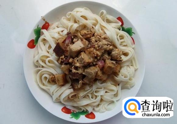 把面条控水捞出,浇上炒好的酱料,就可以享用了。