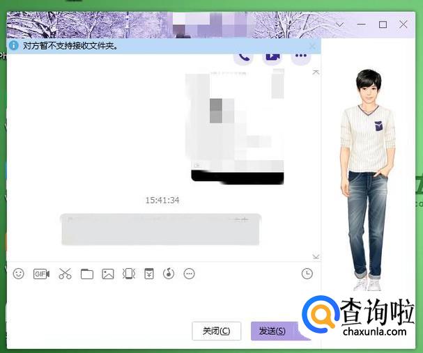 把要发送的文件夹拖入或复制发送给好友,可以看到显示“对方暂不支持接收文件夹”,在电脑上下载一个压缩文件的软件,找到文件夹,点击鼠标右键点击添加到压缩文件。