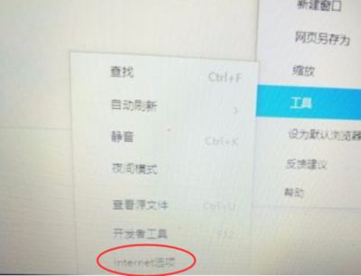 2、然后点击工具,会有个ieternet的选项。