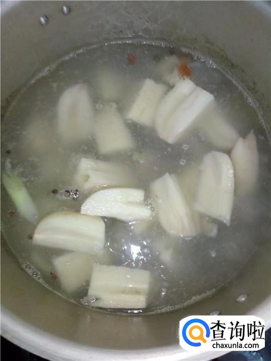 水开之后把藕块加入,大火烧开,中火三十分钟以上。因为小编不吃烂烂的肉肉,所以藕块软了即可。
