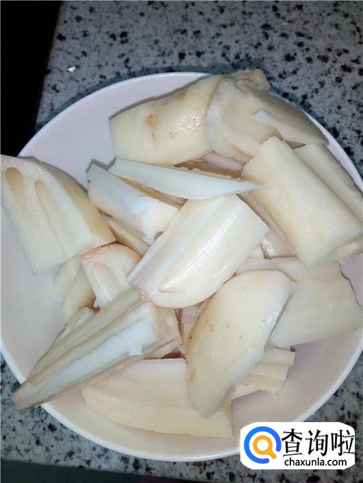 熬汤的时候可以开始给藕削皮,其实就用小刀刮一刮就好了。炖汤的话其实老藕更好吃,就是长节较瘦偏红的藕,但是今天没有挑到漂亮的,所以暂且用嫩藕了。藕切大块一点吃起来更有感觉。