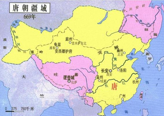 唐太宗去世后,李治即位,即唐高宗。此时唐朝承继贞观之治,国力鼎盛,史称永徽之治。当时尚有宿将如李勣、苏定方、薛仁贵等,名臣长孙无忌、褚遂良等。对内持续推行均田制,选用较低级但有才能的官吏。对外于659年消灭西突厥,疆域西扩至咸海与阿姆河一带,设立安西都护府于碎叶城(今吉尔吉斯托克马克市)。并且于葱岭以西设置十六个都督府,让吐火罗叶护、诃达罗支国王等等中亚君主兼任都督。在东方,与新罗联合灭掉东北强国高句丽和百济,并白江口之战击败日本援军。唐朝在朝鲜半岛建立安东都护府,也间接促使新罗统一朝鲜半岛。