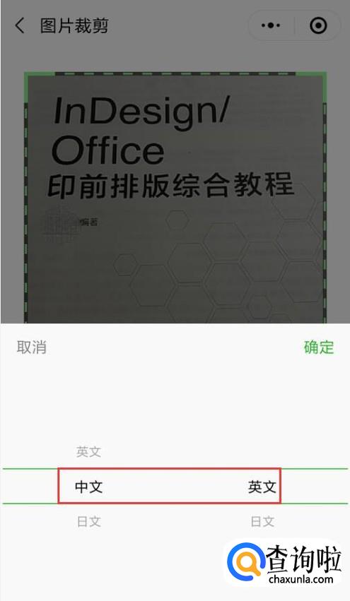 然后对图片做一些裁剪,把不需要的部分切除掉,并把语言设置为“中文-英文”,点击确定。