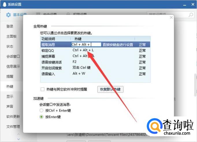 进入之后,点击“热键”,进入到该页面,如图所示。