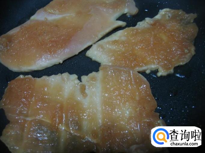 平底锅或者电饼铛预热,刷一层油,鸡排放进去煎,一面煎好之后翻过来,用刷子刷一层蜂蜜。