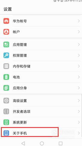 在设置页面找到【关于手机】,点击进入(EMUI8.0及以上系统版本路径:设置>系统>关于手机)。