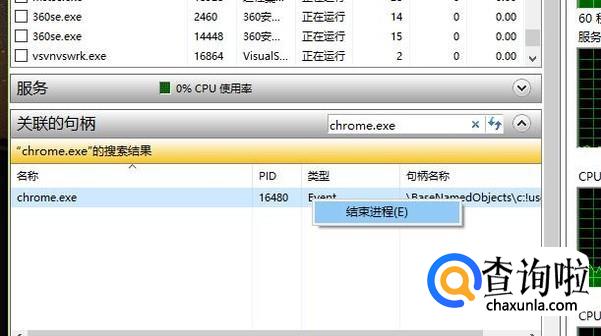 最后如果想结束占用文件的进程,那么如右键单击选择结束进程即可