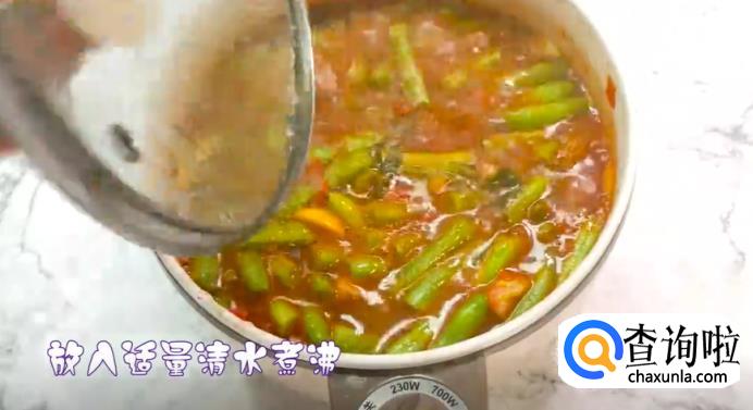 然后,在锅里加入适量清水,盖上锅盖,直至清水煮沸。