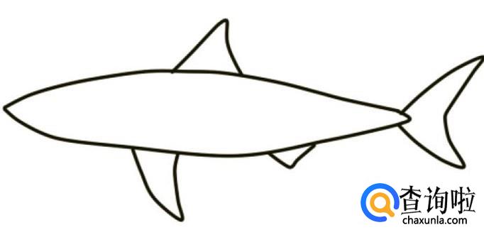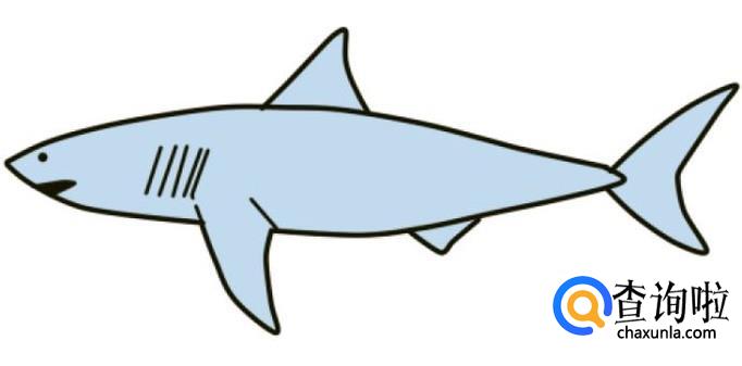 画鲨鱼,要画出梭形的身体、剪刀状的尾巴、宽大的鳍,以及条状的呼吸腮。下面就开始画鲨鱼。