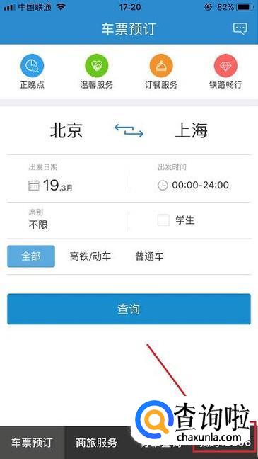 打开中国铁路手机软件,点击右下角我的。