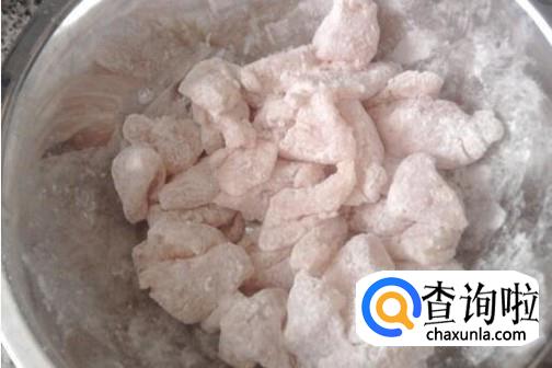 20分钟后再在鱼肉里加入适量的淀粉,然后把它抓匀,让每一块肉都能够被淀粉包裹上。