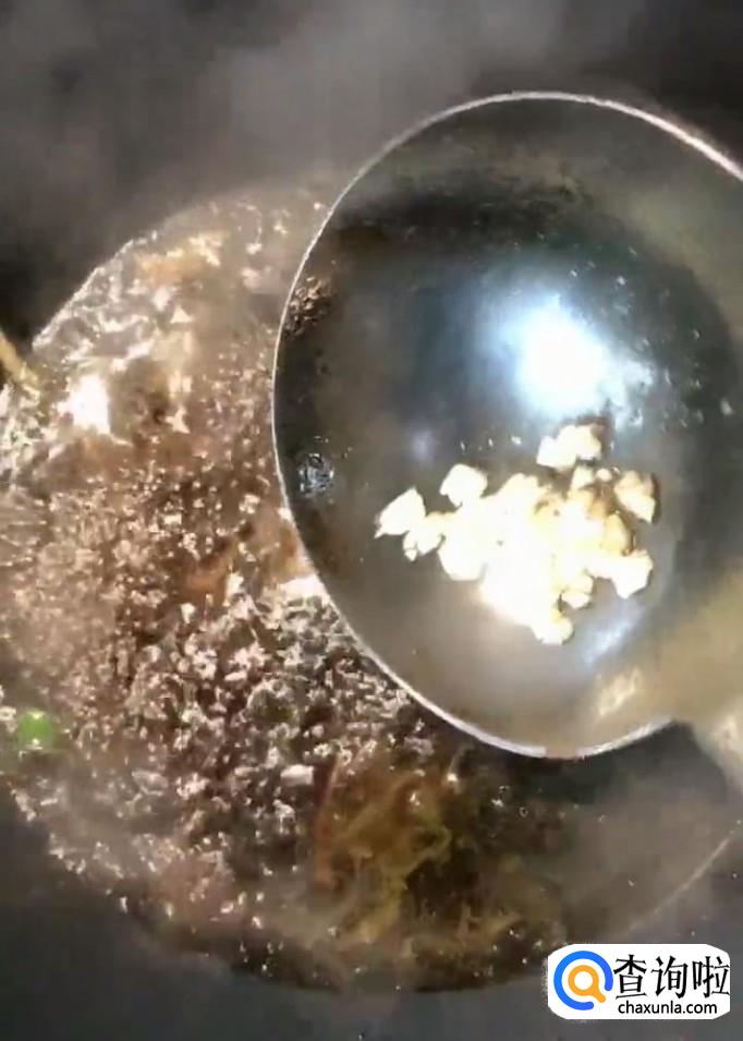 接着我们在锅中留少许底油,放入葱花爆香,放入适量的蚝油,酱油,适量的清水,适量的盐,鸡精,白糖调味,再加入适量的蒜末,适量的水淀粉勾芡